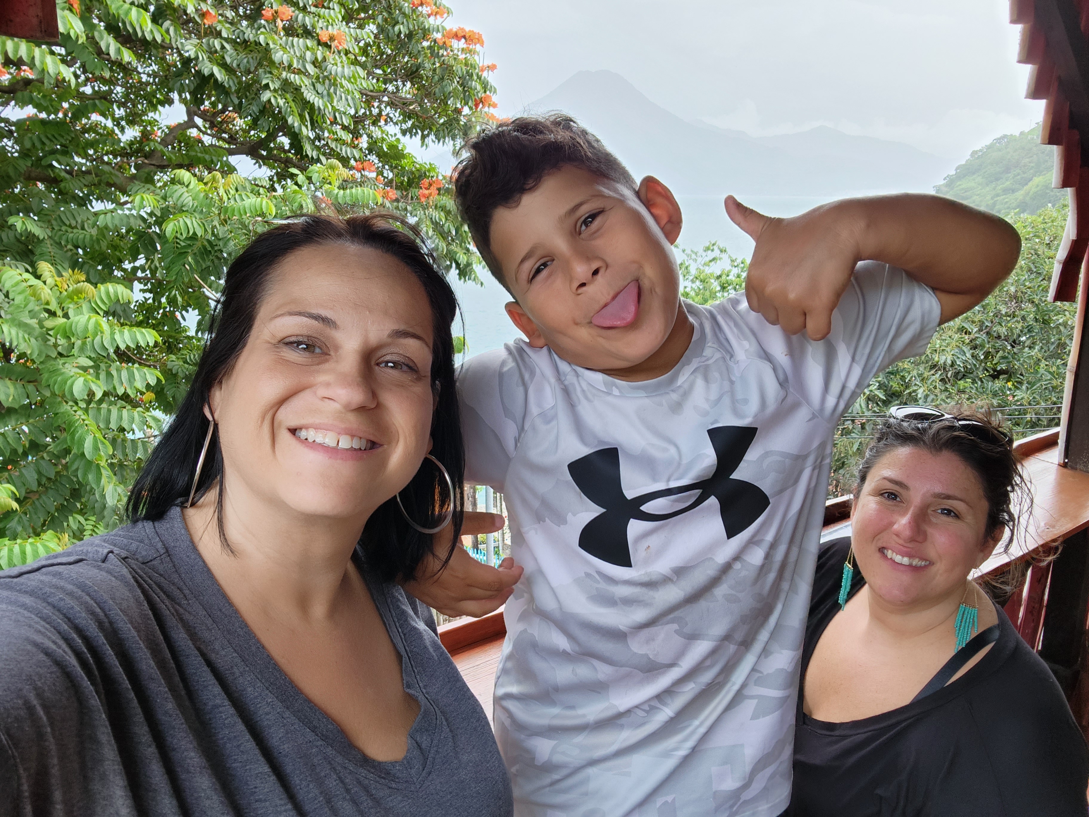 Luca writes….. We got on a plane. I felt good on the plane even though it took 2 hours and 18 minutes. On the plane we saw a helicopter and volcanoes. We arrived at guatemala city and then we took a 3 hour drive ride with Mr. Sergio. We saw a lot of corn, cows, and horses. The cities don’t have regular cars they have tuk tuks. They are tiny cars with one wheel in front and two wheels in back. The houses look like cabins and are really close together. The woman here have African American clothes on. (Tia told me they are called Ropa Tipico, central American traditional clothing) Then we took a boat ride that we had to wait a long time for because there wasn’t enough people on the boat. Mommy almost threw up waiting on log to get on the boat. The boat was really fast and really bumpy because of the waves and mommy bumped her butt. Tía and I sat at the front of the boat. We saw all the volcanoes while we had the boat ride. We got to our hostel La Iguana. Our room was nice and clean like all hotels. It’s on the second floor with a balcony. I ate a hamburger and French fries for dinner but they tasted Spanishy. So I ate all Tias food. After dinner we took a long journey walk on a secret passage way. Then we played pool and I hit the ball in 3x in a row but Tia won everything. Then we went to bed. That our story. The end.