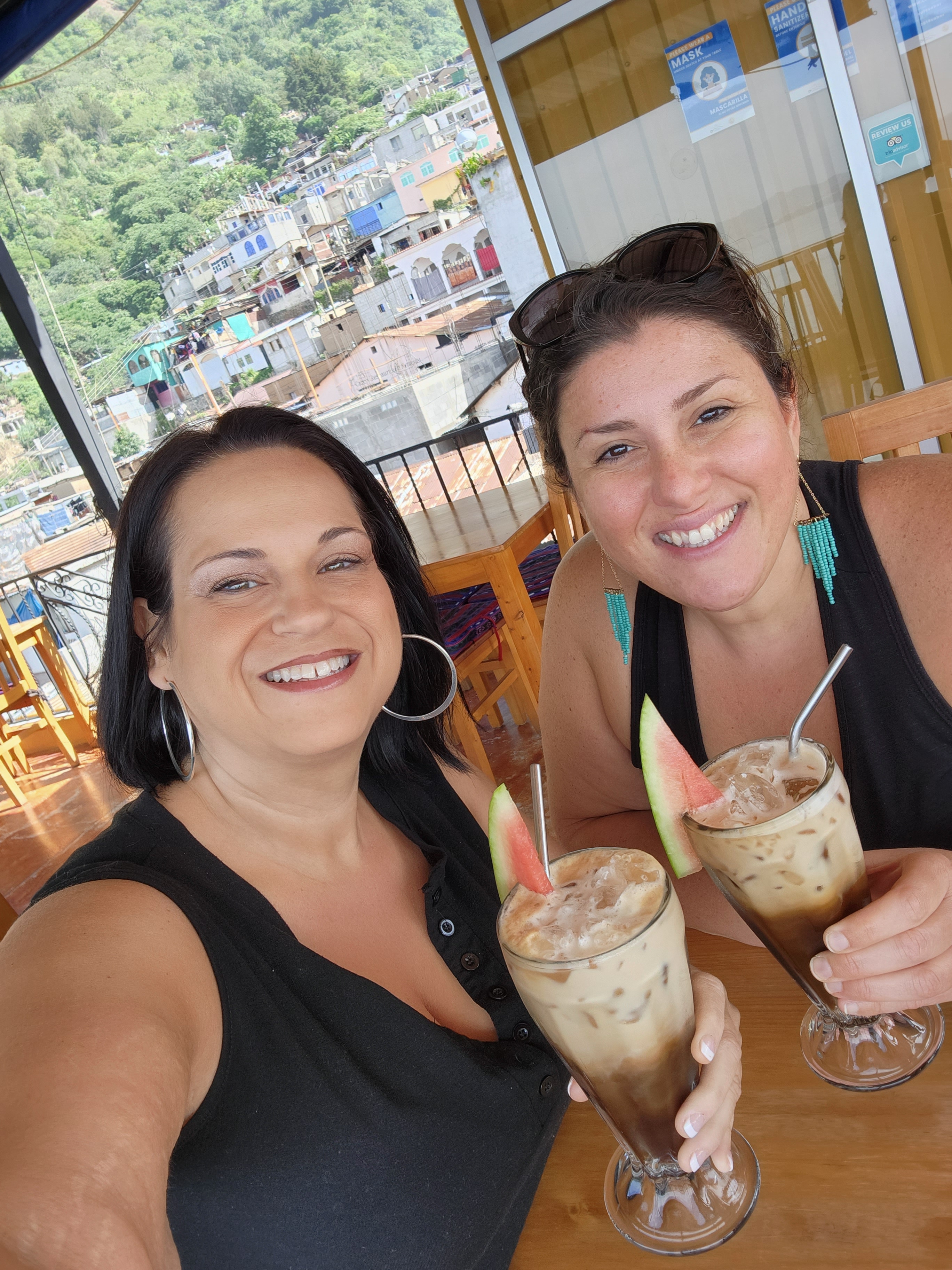Michele writes…I have returned to the mother land were I am once again amongst my people lol (all the women look just like me, 5ft tall and round 😆) My blog title best describes my day yesterday. “Let it flow.” All the planning in the world… and life still happened… and we went with the flow. Some of us better than others lol. You know that saying “the apple doesn’t fall from the tree”, well I have seen that play out in real life. Last night Luca said to me “I wanted a place with a fan”, to which I replied “there are no fans or air conditioning anywhere we are going ” (because the temperature is 65 at night and highs of 74 during the day), to which he replied “this was a bad idea I wanted a place with air conditioning”. Apple- tree theory in full effect here. Nicole and I have been traveling for years together so we do it pretty well… like I know she can’t have feaher pillows in her bed and she knows that she’s responsible for communicating and exchanging money. Throw Luca into this international travel mix and now we (Nicole and I both) are learning his traveling quirks. Like I mentioned, things didn’t necessarily go as planned but that is ok, we regrouped and adjusted our plans and ended last night on a high note with some tastey Flor de Cana, Zacapa and playing pool with my Luca in the hostel. This morning began with laying in the hammock and having Luca dictate his blog to me, which was my favorite part of the trip so far. Hearing the story through his eyes and helping him learn how to be descriptive enough to include you all in our journey. This followed by my cold shower, and me standing topless in front of the sink vigorously brushing my teeth in front of our open bathroom window (use your imagination here on what else was moving vigorously 😆) At which point I heard a rustle in the bushes… that I assumed was one of the many loud birds around us. But to my surprise I quickly learned it was a teenage boy as we locked eyes through the bushes. jury is still out on whether it was more traumatizing or exciting for him, I’m sure when I see him at tonight’s bbq things will become more clear lol. This trip it seems we shall be one with both nature and our neighbors. We took our first ride in a tuk tuk and headed up to Sabor de Cruceno for breakfast. It’s this incredible NGO for the culinary students in this village. The food and view and food are outstanding.