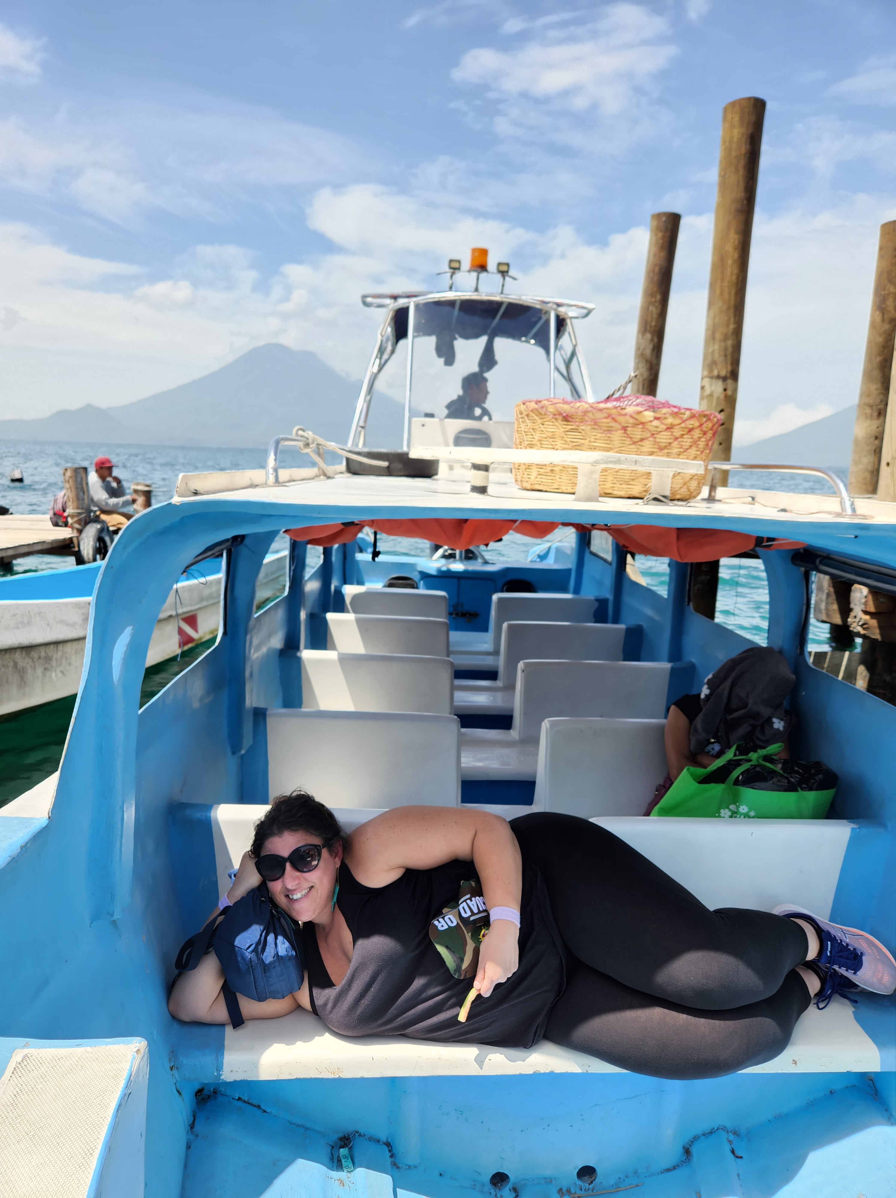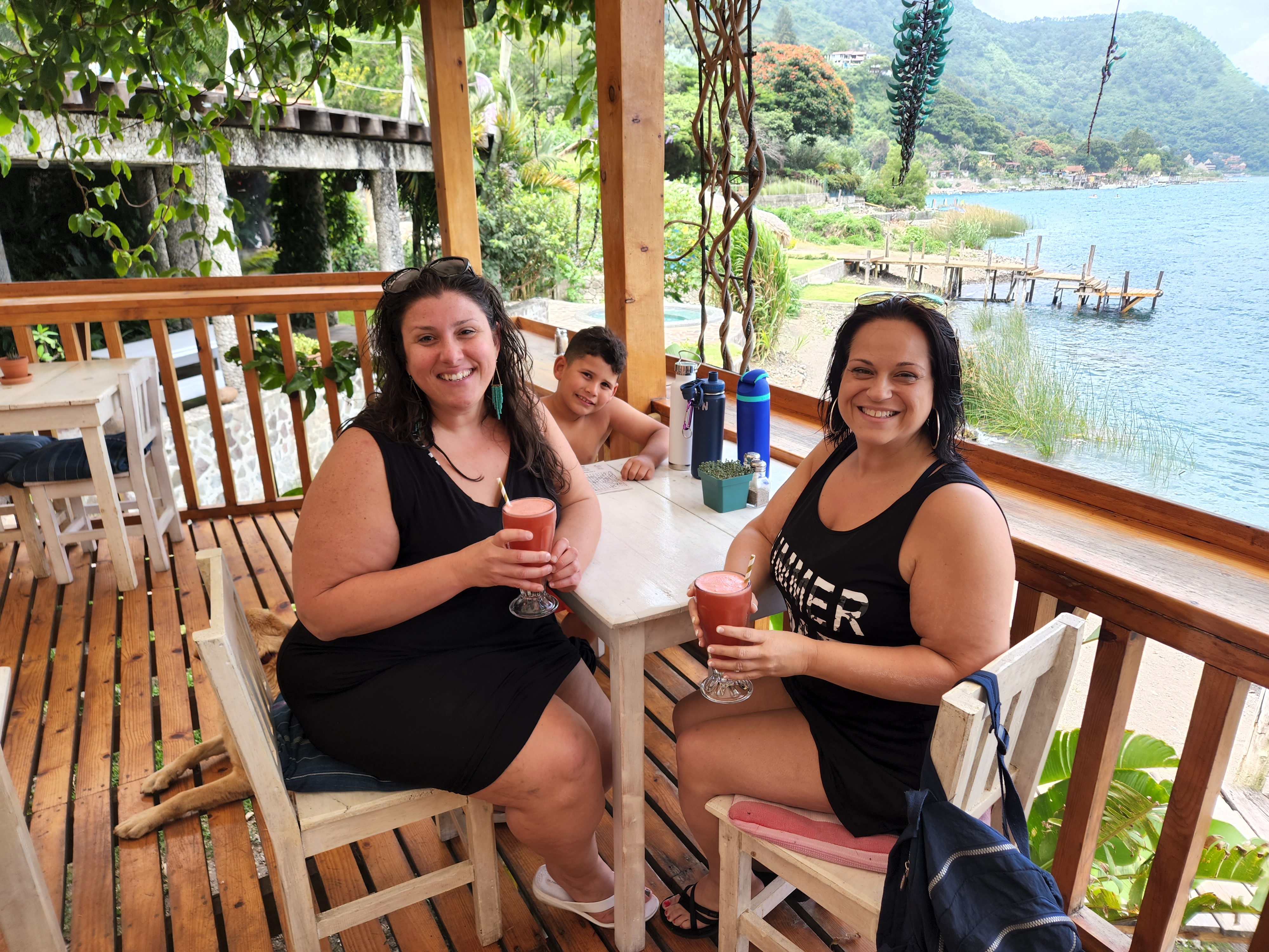 Tonight I dictate this blog through crack in the door from the toilet to Michele. Gotta get the thoughts of the day out when they come to you, right? It is here, with the sound of nature, in the dark (so that I don’t traumatize any more neighbors) that I have been able to reminisce on all of the good. Breakfast was lovely. Coffee feeds my soul. I still don’t like the men at the launcha (boat launch). The man at the kayak stand was lovely though, as are all of the people here (aside from those boat men) and reminds me how hard it must be to have to hustle to feed your family. I truly am blessed. Lunch was delicious especially the frozen watermelon and Zacapa. We decided to stay put and spend the day on the dock jumping into the lake. I am sure Luca will have a more to share about that in the morning. I always thought that I wanted to experience a healing retreat where you go into a smoke filled hut with a shaman doing peyote, but alas, no. Why you ask? I got smoke inhalation. How you ask? From the wood burning oven in the kitchen below our room. This my friends may be what takes me out.