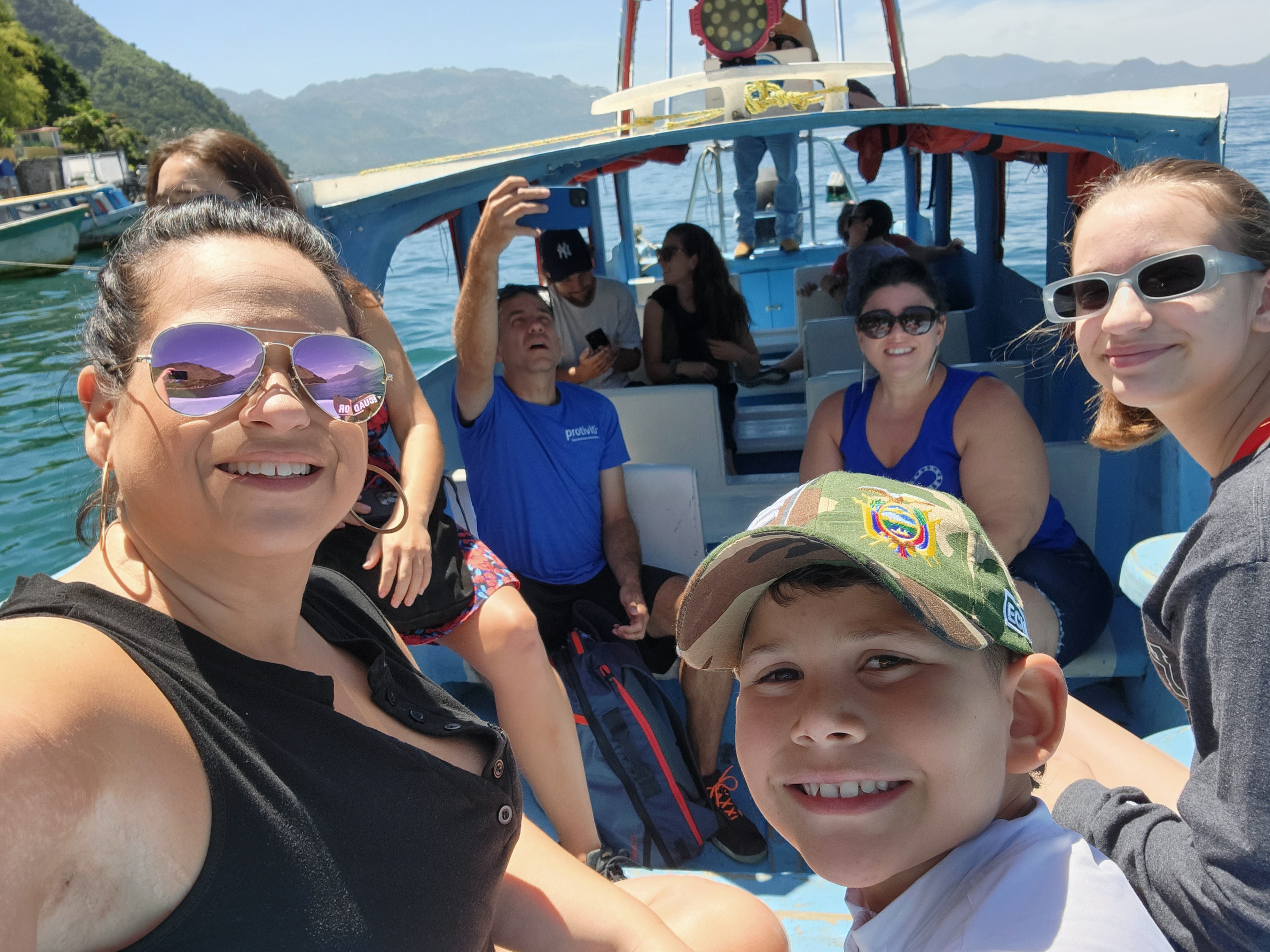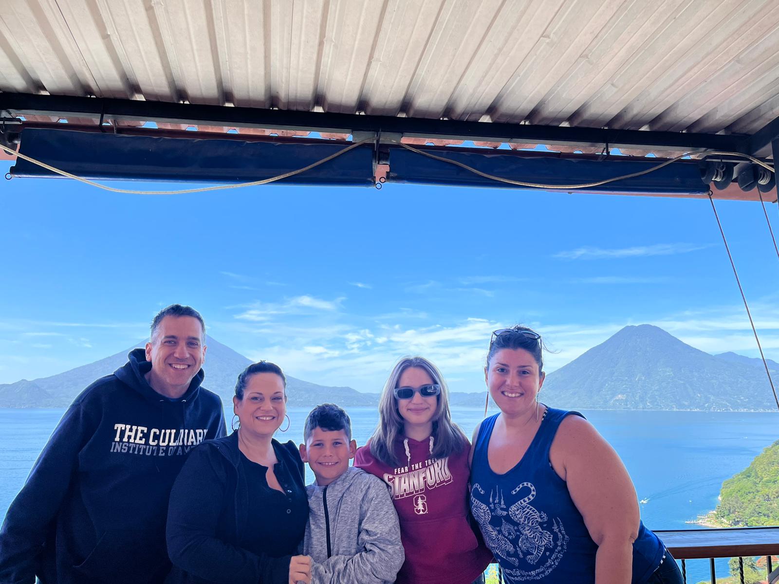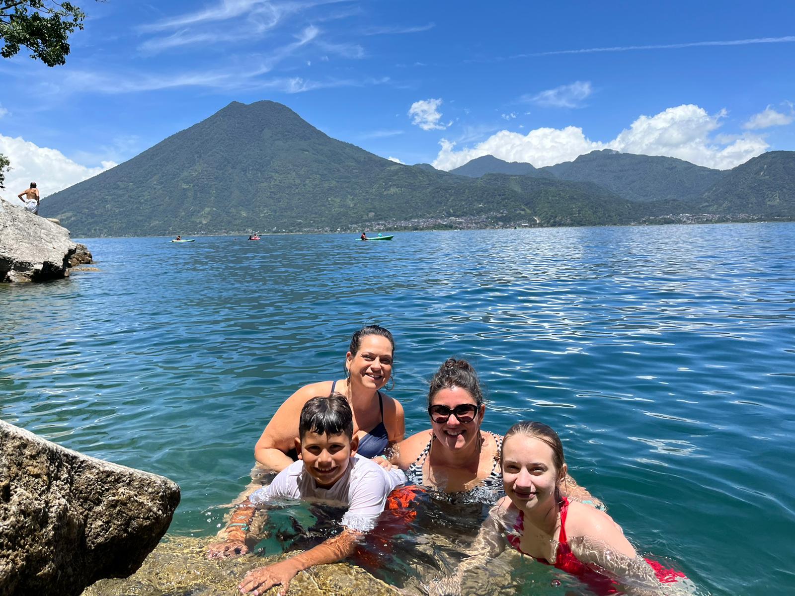Nicole writes…We climbed up a treacherous mountain/volcano/rock thing today so that MJ, Maggie and Luca could jump off and I could silently play out all the ways in which we could become maimed, handicapped, or fall to our deaths. I did this as silently as possible so as not to disuade my child from experiencing this once in a lifetime opportunity to plunge into the depths of a volcanic lake. He was so brave and I was so proud. Michele and I got into the water in a more senior citizen fashion; sliding down the rocks on our bottoms until we hit water. We then traveled to Antigua and entered our magical new home. It is old and gorgeous, has a beautiful open air garden courtyard in the center (which thrilled Luca whose first words were “I can’t wait to see how many bugs are in here”), and may just be haunted. The thumping heard on the wall between Michele and I’s bedrooms is, um, confusing and a bit disturbing. We will explore more and get back to you on the origin. Other than that bit of potential paranormal activity, I am in love with this home and am so excited to see what the week has in store for us.