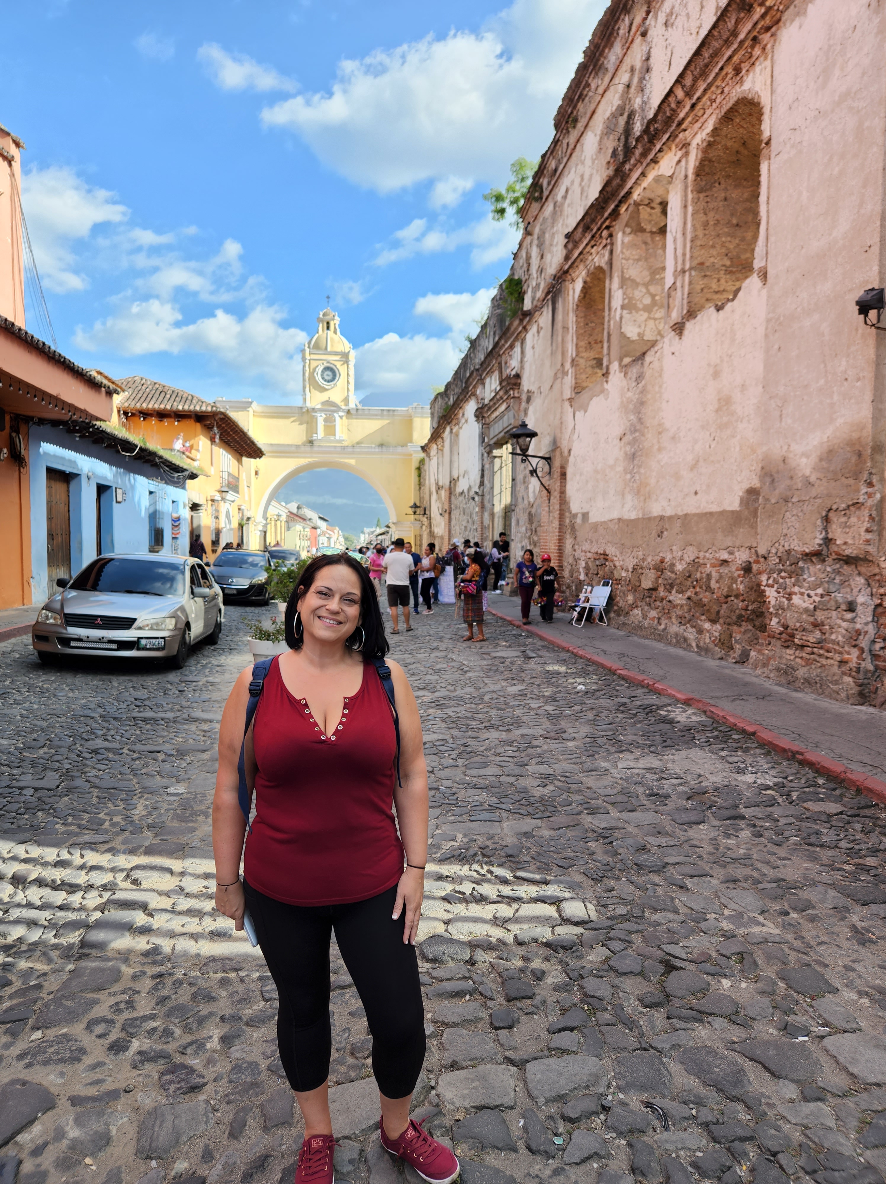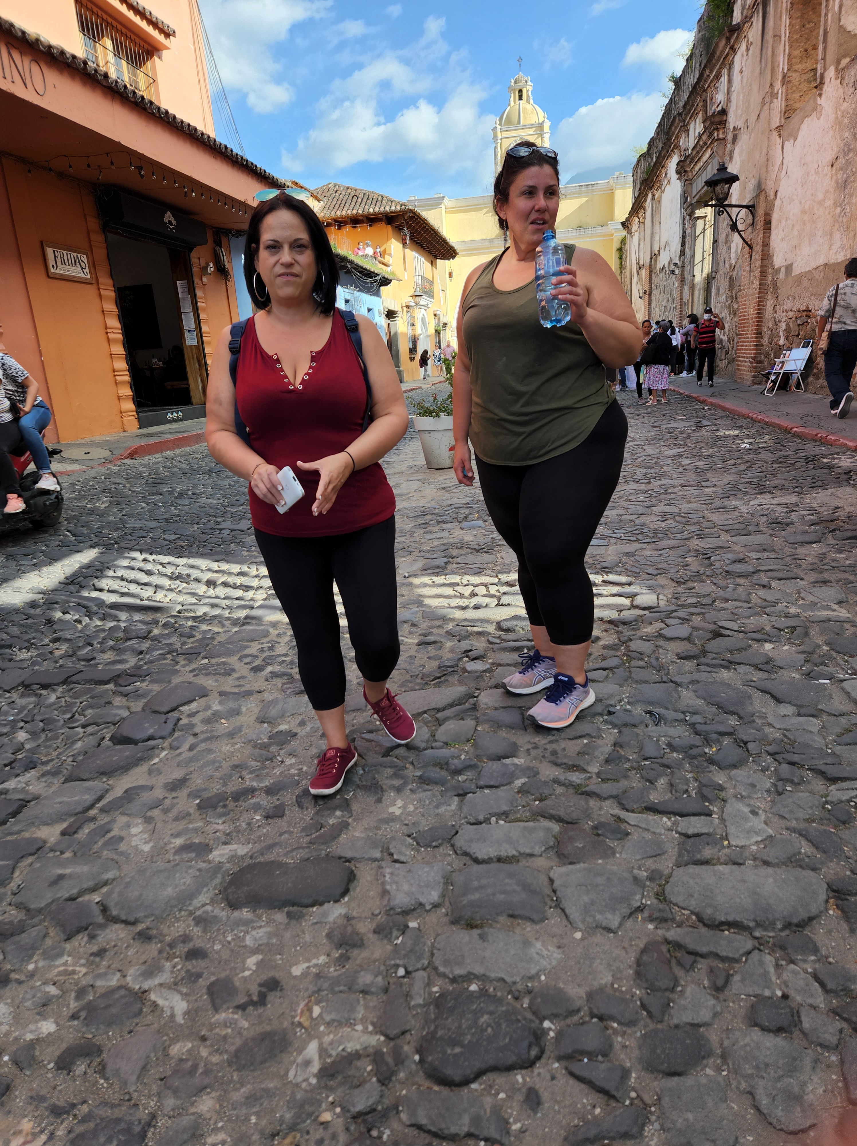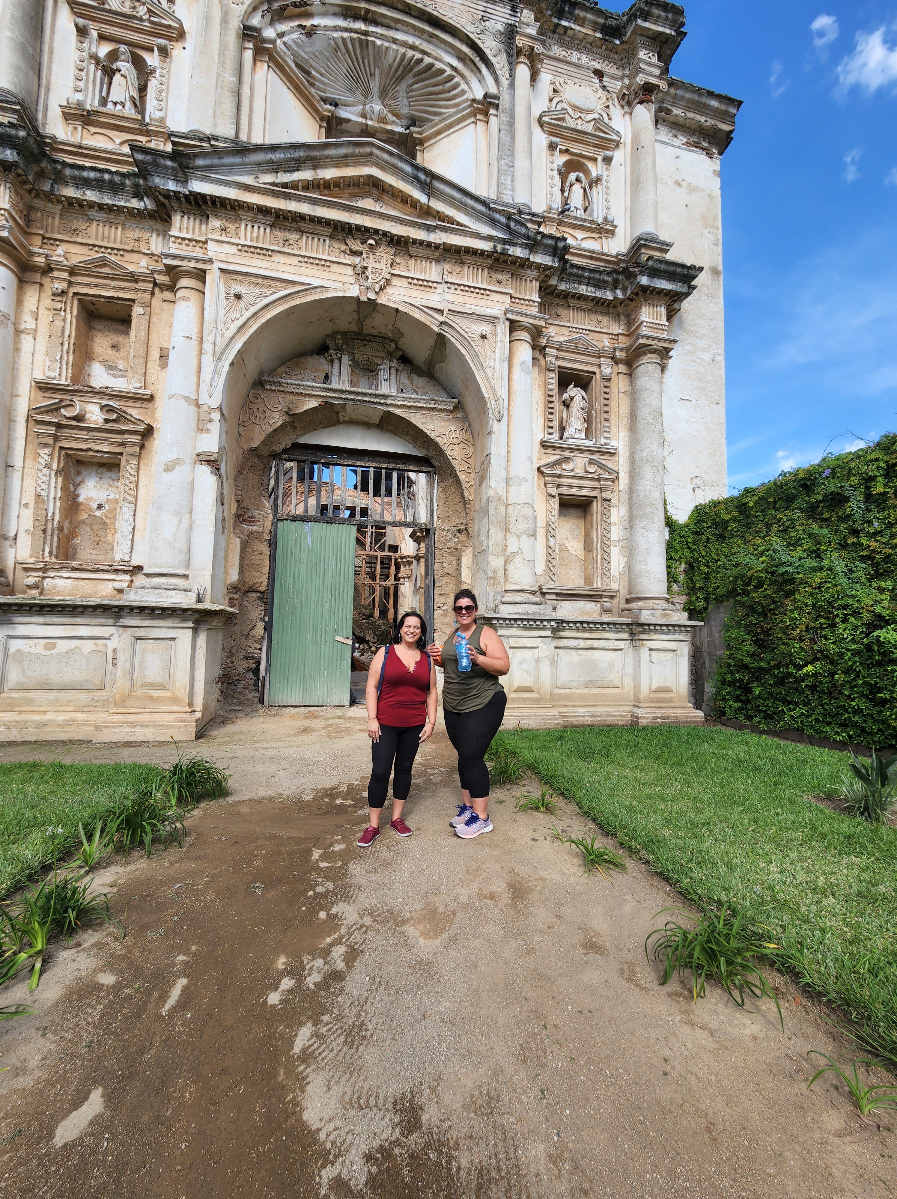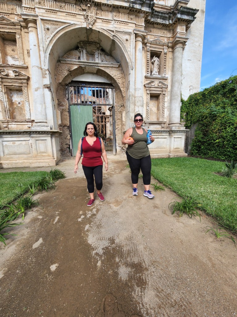 I haven’t had the chance to blog in a few days. We’ve been so busy that my little down time I do have is spent blogging with Luca, which I’d take over doing my own blog any day. Wednesday I got Guatemala (the funk) but started meds the same day so it never hit me hard. I also used it as an excuse even though Nicole and I planned it the night before I got sick lol) to play hooky from school. Nicole and I haven’t had any time to just have fun and wander so with Maggie and Luca in school and MJ in charge of them we were free to do as we pleased for a few hours. So we decided to pamper ourselves with amazing massages and Nicole even convinced me to go into the sauna where I am pretty sure the the vix vapor rub that was in the magical bottle of water we doused the furnace with cleansed my soul. Between the heat and the cold shower I have to admit it was pretty invigorating. I then conceded to and embraced the hippiness of this town (and my best friend) and went to a vegan place for lunch (you know the give and take that comes in all friendships, I make her try sketchy places and she makes me eat vegan) Not only was the restaurant gorgeous, it was delicious. We picked up Luca from school and headed out to see some sights of the city. I took Luca to one of my favorite spots; the basketball courts by the ruins. I spent almost every afternoon with Michael and the boys at this court after school. Such a fun contrast of kids playing basketball with ancient Mayan ruins as their backdrop. We wandered through a convent that was destroyed by two different earthquakes and last used as a prison. The last two pictures in this post (while they are by far the least attractive pictures of ourselves) have to by my favorite taken by Luca. All I hear in my head when I see those pictures are “bad girls bad girls whatcha gonna do, whatcha gonna do when they come for you” (sing it with me). I am so lucky I was able to drag my bff on this adventure and introduce her to a world I love. It’s fun to be in a place with so much history and totally worth playing hookie from school.
