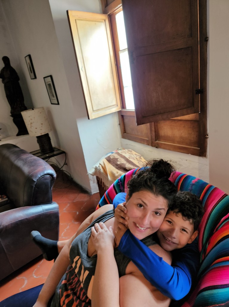 If anyone knows me, you know I don’t do well with goodbyes or even see you laters much less with goodbyes that change the dynamics of a trip for me. I am so lucky that I have gotten the chance to travel with my bff again and introduce her to a world that holds such a happy place in my heart. On top of that I have gotten to share in learning with Luca and in turn he’s made learning more fun for me. You know how when you fake excitement for a child to help them through… you then in turn tend to be more excited about things in general. Part of my joy was sitting with my teacher and hearing Luca squeal in excitement or laugh at something he was doing with his teacher. My teacher and I would both pause in our long intense conversation to smile and look over at him. I will miss those moments, but I am so grateful for them. Grateful that he had a wonderful teacher; who was childlike enough to jumped over cracked sidewalks with him as we walked through town, who showed care and concern for him as she put her arm around him to cross the streets, and who made learning fun for him. I am thankful for both of them adding to the joy of my experience. Yesterday was a rainy day here so we didn’t get to go out and about. I got a brand new bed (I’ve been sleeping on an incline since we arrived). As luck would have it the rain made its way through my roof and onto my brand new bed (luckily I saw it in time and did some furniture rearranging) The rest of our day consisted of a movie day in the Sala, dinner out (and wandering through parque central with a live production), and then Nicole and I wandered out to watch the locals dance. Having this big amazing house has been amazing but there is something to be said about living in community with strangers. It gives you connections and ties to people other than your own. I will miss having my best friend around and someone to hang out with dearly. I will also miss my nightly snuggles in bed with Luca as we blogged together (he promised me he would call me tonight to write his last blog, as we can only blog at night according to him😊) The shift in dynamics is a hard adjustment for me. It’s almost as if the party has ended and it’s time to focus on what I came here for… to learn some Spanish, wish me luck.