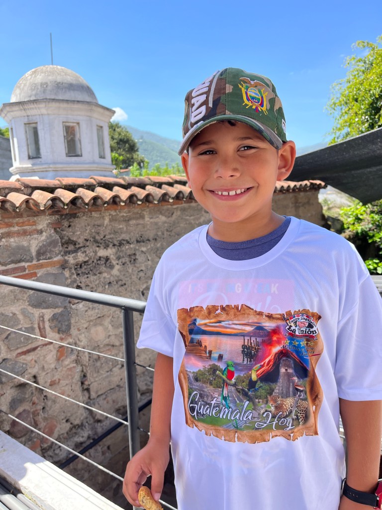 I woke up and ate and got dressed. Caminamos a la escuela (we walked to school). En el primer minuto (in the first minute) escuchamos música (we listened to music). I learned a little bit, I played a game of catch using verbos (verbs) with a boy named Leo. It was divertido (fun). Leo, me, and our teachers played hide and seek with cards with words on it. Leo is shorter than me and he wears a cowboy hat. I learned some more. Mommy surprised me with a new bag because my bag was ripped. She got it at the mercado (market). She also got me a basketball and I was so happy!