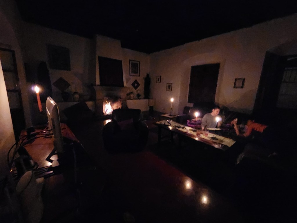 We missed three blogs because there was no electricity. We still don’t have electricity so maybe tomorrow or maybe the day after that. The big giant storm knocked the electricity things out and just our block has none. We have been using candlelight at night and it’s not that cool because we have to do a fire and light a lot of candles. There’s no light and we are in ancient times. I am showering and going to the bathroom in the dark with candles.