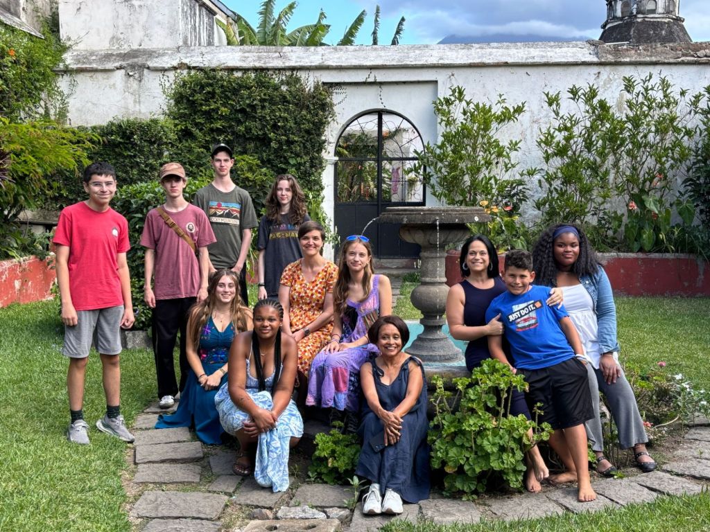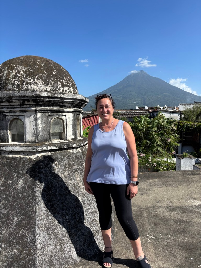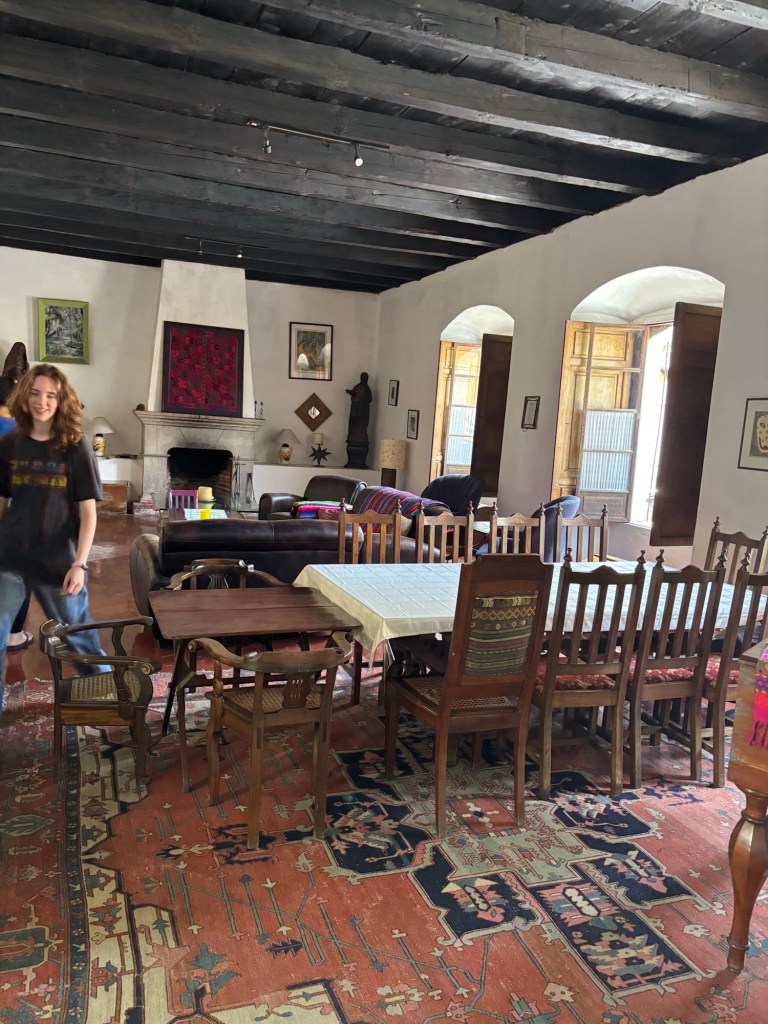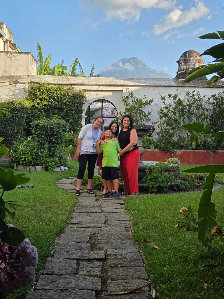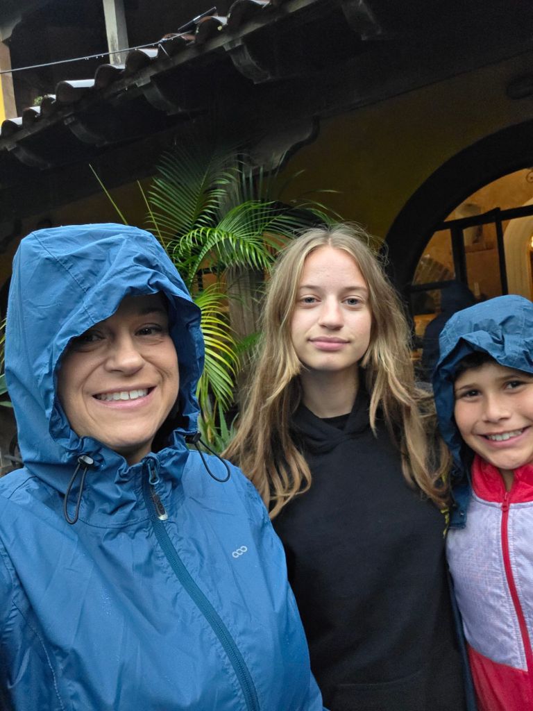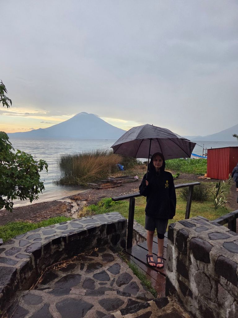 First I woke up early and had scrambled eggs for breakfast. Then we had to go somewhere like where the yoga was and we had to take an Uber up a mountain and then hike the rest of the way up. Yoga was fun, and a little boring, and a lot of stretching. The view of the mountain while we were doing yoga was magical. Once we finished we hiked halfway up the mountain to go into the reception center to get a little brunch. I played ring toss and I got the ring on the hook one time. They finally had pancakes without milk in it so I ate that and with some syrup and it was a little sweet but good. The hike was so tiring that we had to take a break after every 20 to 30 steps. We got super lucky because other people got an Uber and we came at the exact same time as they got there so we got that Uber and drove back to Antigua to our house. Once we got home we chilled for a bit while Ms. Christine went out for a walk because she didn’t come with us for our yoga. Then we chilled for a bit and I had a little snack and then Ms. Christine bought a lot of fun stuff for her house and for here and then we walked to pottery. Mommy and Ms. Christine went first and Mommy messed up a few times but eventually she got it. Ms. Christine stayed focus and only messed up like one or two times. Then it was my turn. The crazy thing is, I was the only one who didn’t mess up at all! Mommy made a mug cup, Ms. Christine made a tiny bowl. I made a medium size bowl. Then Tia went and she made a special kind of plate for food. It was so fun that I wanted to do it again. When our pottery clay was drying I didn’t know that it would take a week and a half to dry! Once we finished pottery we walked to an amazing music restaurant and I had a burger with fries and we played a lot of cards. So then when we got home I took a shower and then I hanged out in the sala/living room for a bit then went to bed.
